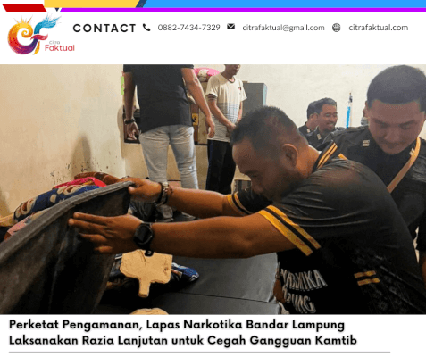 Lapas Narkotika Kelas IIA Bandar Lampung terus berkomitmen mendukung kebijakan Direktorat Jenderal Pemasyarakatan dalam mewujudkan lapas yang bersih dari narkoba dan barang terlarang, serta menciptakan lingkungan pembinaan yang kondusif bagi seluruh warga binaan.