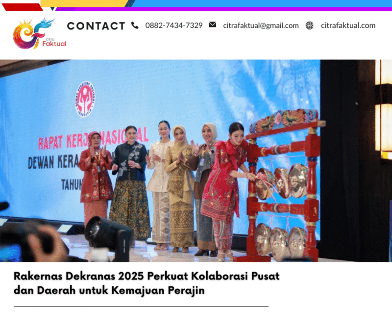 JAKARTA, (CF) – Ketua Dekranasda Provinsi Lampung Ibu Purnama Wulan Sari Mirza menghadiri Rapat Kerja Nasional (Rakernas) Dewan Kerajinan Nasional (Dekranas) 2025, yang dibuka Ketua Umum Dekranas Ibu Selvi Gibran, di Mercure Convention Center Jakarta, Selasa (23/9/25).