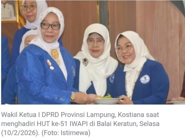 BANDAR LAMPUNG, (CF) – Wakil Ketua I DPRD Provinsi Lampung, Kostiana, menghadiri Peringatan Hari Ulang Tahun ke-51 Ikatan Wanita Pengusaha Indonesia (IWAPI) yang digelar di Balai Keratun, Ruang Abung, Selasa (10/2/2026).